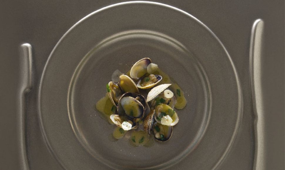 Laver les palourdes en plusieurs eaux et les égoutter. Éplucher les gousses d’ail, les couper en fines rouelles. Laver, essorer, effeuiller et concasser le persil.