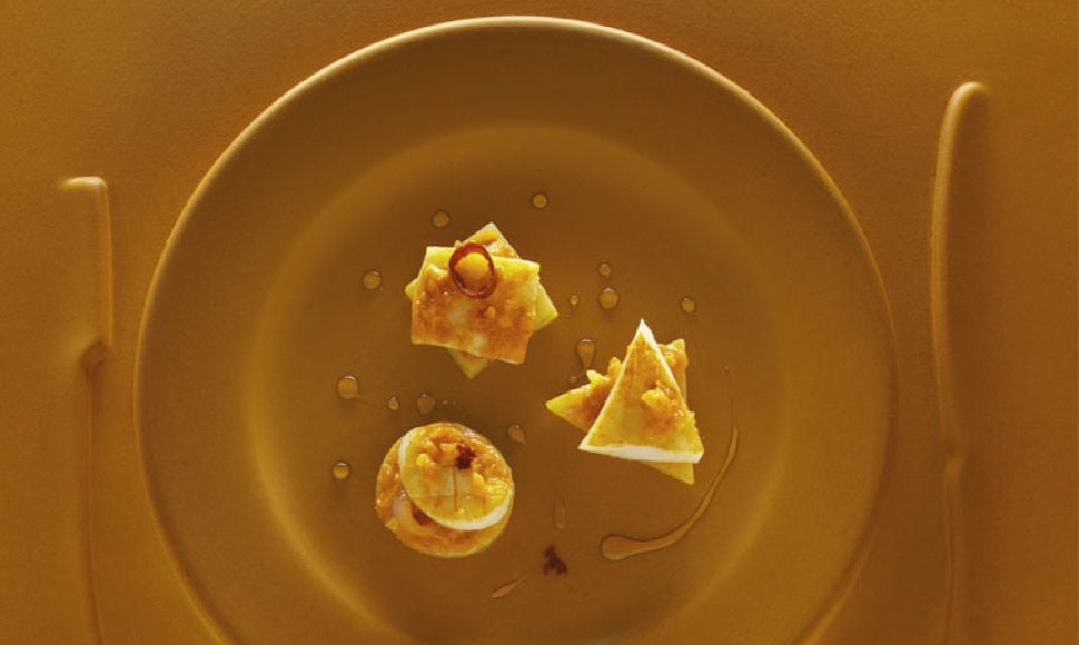 « Sipia a bruta » est un des plats typiques de la cuisine des pêcheurs de Vilanova. Le nom du plat vient de la manière de cuire les ingrédients crus tous ensemble, donc « brut », les pommes de terre étant « cassées », soit grossièrement coupées. Nous avons gardé les mêmes ingrédients mais affiné la recette.