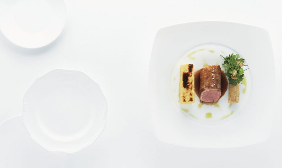 Selle d’agneau rôtie à la Guinness, épaule confite à la menthe, pommes de terre au gratin