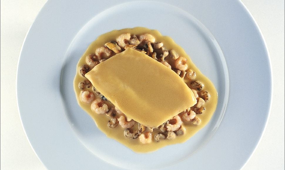 Assaisonner ces derniers de fleur de sel et les raidir dans un sautoir avec du beurre moussant sur chaque face. Ajouter les champignons de Paris, laisser suer et déglacer avec le vin blanc et la base de sauce, puis cuire au four à couvert. Au terme de la cuisson, retirer les soles et les laisser reposer dans un endroit tiède.
