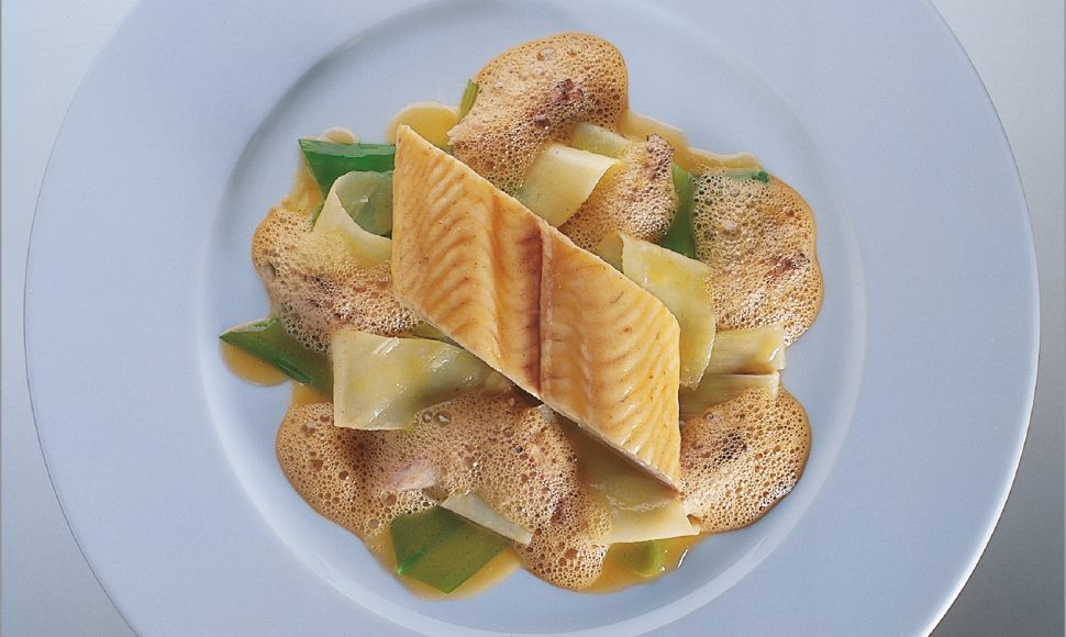 Sole, pommes nouvelles et poireaux de noirmoutier, jus d’araignée de mer