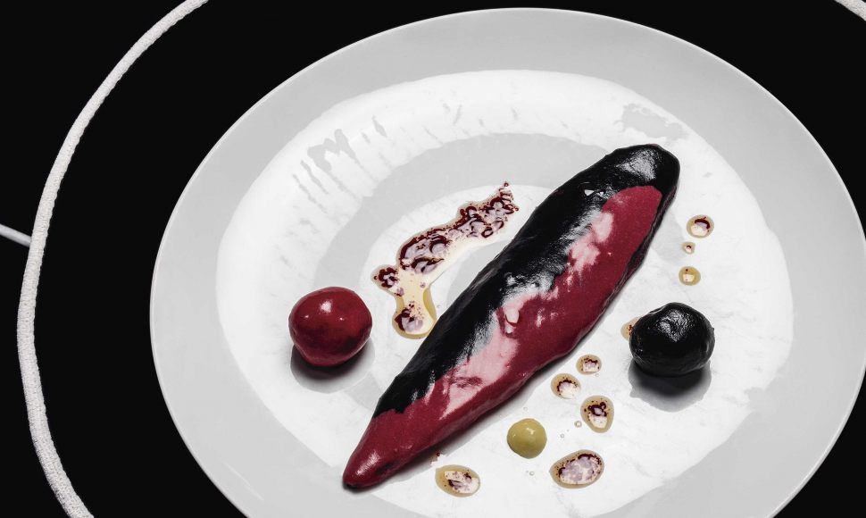 Le rouge est obtenu avec de la betterave fumée, de la pomme de terre et de la pâte de citron. Ce plat de sole est une surprise qui contribue au plaisir du palais.