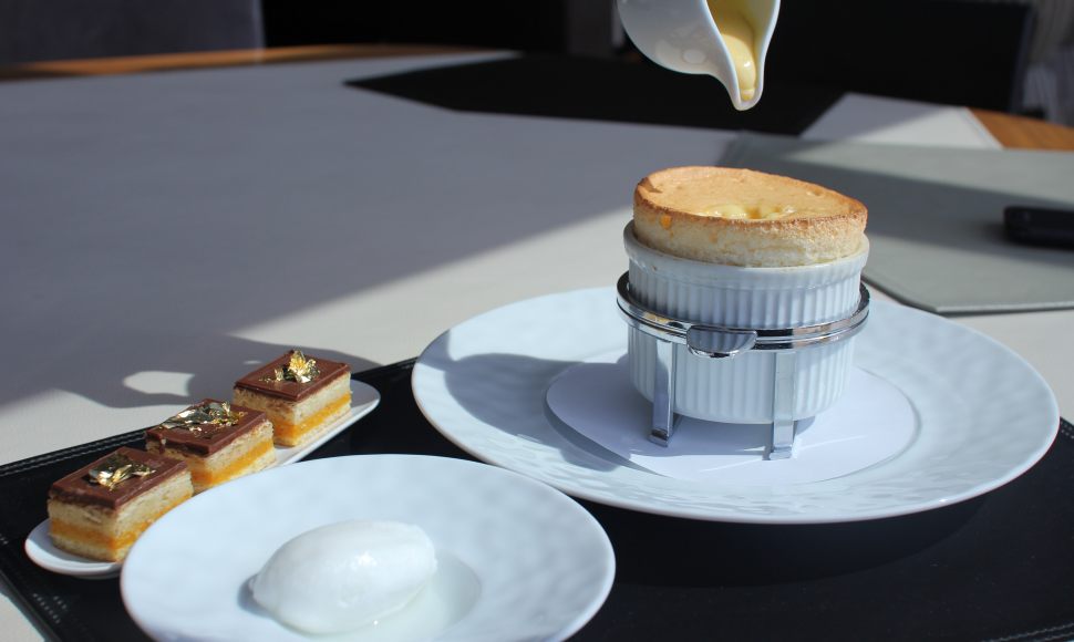 Soufflé au Grand Marnier®, pim's à la marmelade d'orange et sorbet verveine