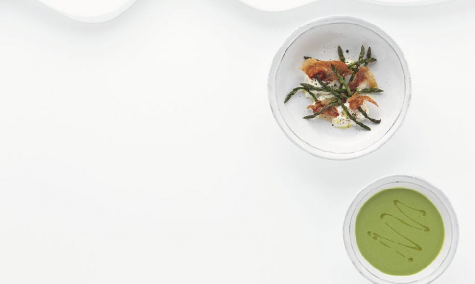 Soupe d’asperges, « burrata di bufala », jambon doux