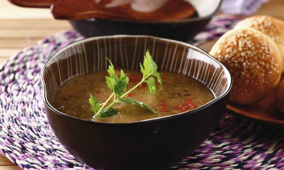 Dans un faitout, mettez l’huile d’olive et faites chauffer à feu doux. Ajoutez les oignons, l’ail et le piment puis faites revenir 5 min en remuant. Ajoutez les aubergines et les tomates et mélangez pendant 2 min. Ajoutez le bouillon, couvrez et faites cuire à feu moyen pendant 15 min. Transvasez le contenu du faitout dans le bol du blender et mixez à forte vitesse jusqu’à l’obtention d’un mélange lisse et homogène.