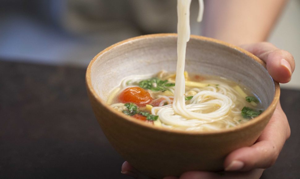 Mettez 1 l d’eau tiède et 8 g de sel dans une grande casserole et faites chauffer à feu vif. Mettez les vermicelles puis, à ébullition, baissez le feu. Poursuivez la cuisson 5 min, couvrez et laissez 10 min supplémentaires. Égouttez et réservez.