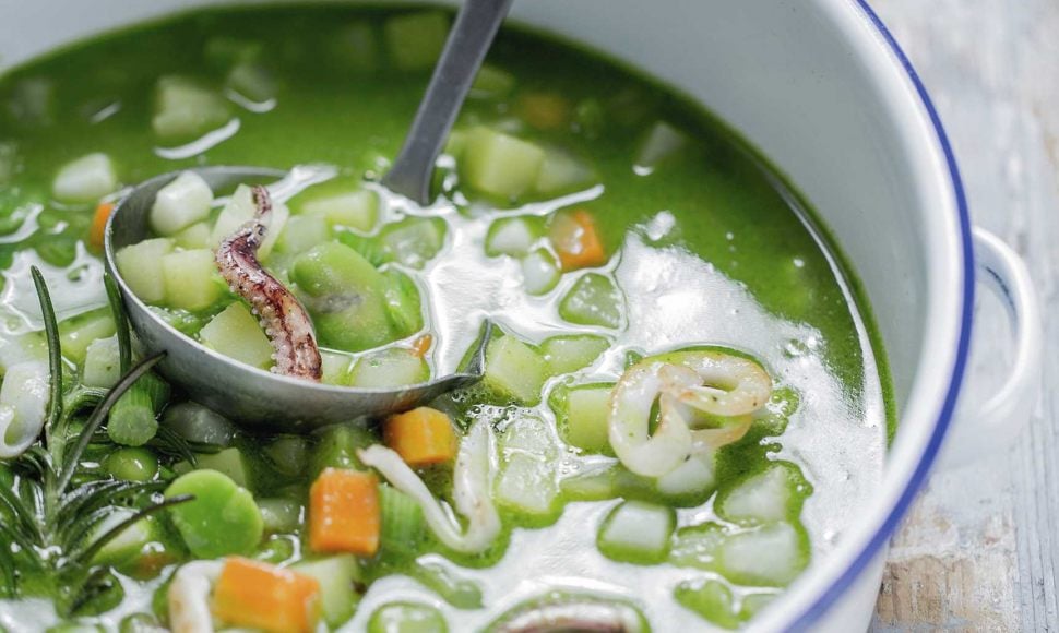 Soupe de calamar minestrone de légumes, blettes, citron, basilic