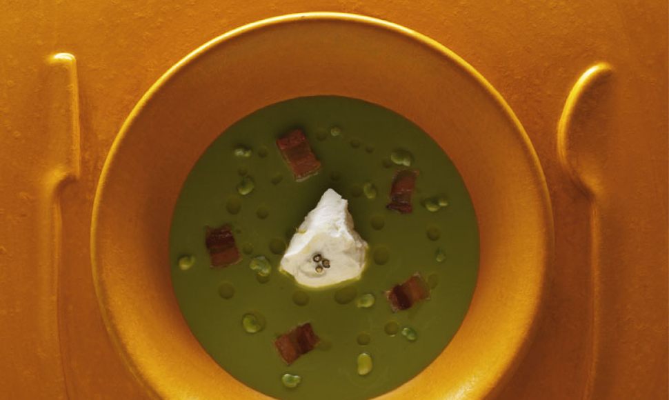 Jean et Danièle Lorenzi, auteurs de l’Art traditionnel et folklorique du bien-manger de Monaco, considèrent la « Supa de fave » comme typiquement monégasque. Nous en avons affirmé les saveurs en l’épurant de certains légumes et en y ajoutant du caillé de brebis.