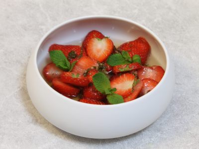 De simples fraises à sublimer dans une recette facile à concocter. Ce dessert gourmand s'adresse plutôt aux adultes, le vin blanc est soumis à une faible cuisson et perd donc peu de son alcool ! A essayer sans plus attendre pour être surpris par le subtil mariage menthe fraise gingembre.