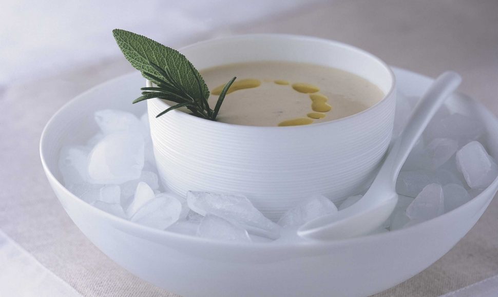 Au moment de servir, incorporez l’huile d’olive à la soupe. Goûtez et rectifiez l’assaisonnement si nécessaire. Répartissez la soupe dans des assiettes creuses ou dans des verres. Servez aussitôt.