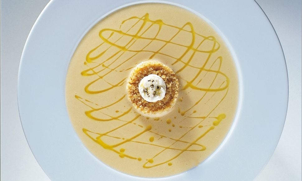 Soupe passée de blé, caillé de brebis et pecorino affiné