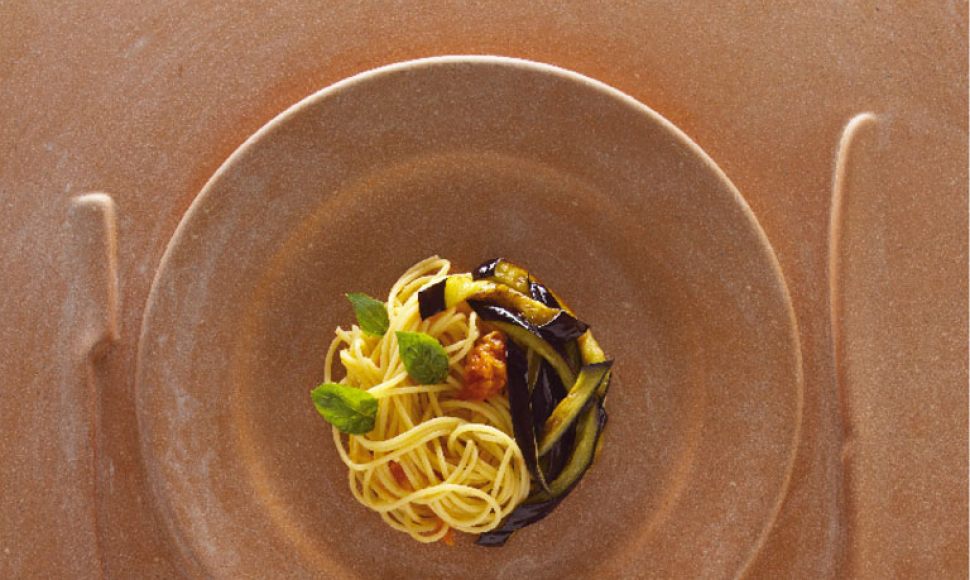 La tradition gastronomique et mondaine de la fin du XIXe siècle voulait que l’on baptise les recettes du nom d’un personnage illustre, chef d’État, compositeur, musicien, cantatrice, actrice de théâtre. La « Pasta alla Norma » fut créée par un cuisinier sicilien qui la dédia à Norma, personnage du célèbre opéra de Bellini (et plus tard interprété par Maria Callas). Nous avons simplement modifié la présentation de la garniture et allégé la cuisson de cette recette.