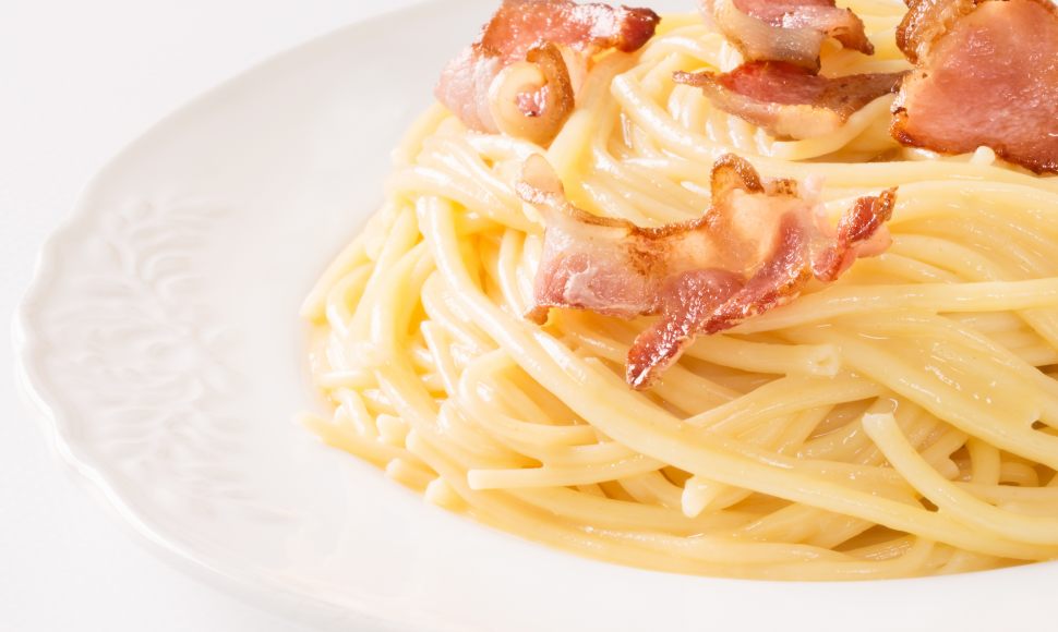 En fait, d’autres pâtes que les spaghetti peuvent se cuisiner alla carbonara. Plusieurs explications sont données sur l’origine de cette recette, l’une d’elles affirme que les spaghetti alla carbonara seraient nés chez les bûcherons charbonniers de l’Apennin. Ils sont devenus maintenant un classique : nous en avons gardé tous les ingrédients pour votre plus grand plaisir.