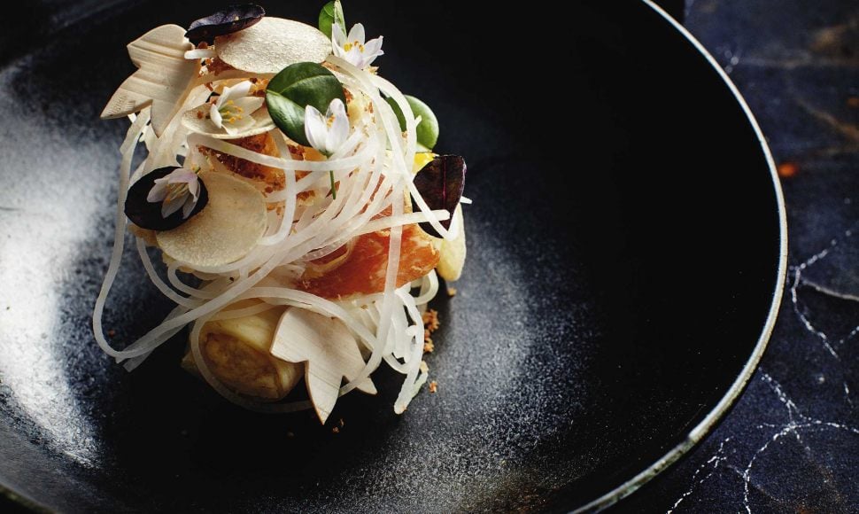 Entre la Riviera et la Caraïbe, ce plat est un lien qui renvoie à mon métissage intemporel. C’est une interprétation personnelle et originelle de la carbonara, issue de mon identité créative, dans le respect des traditions et de mon environnement. Il est devenu un classique du restaurant Blue Bay.