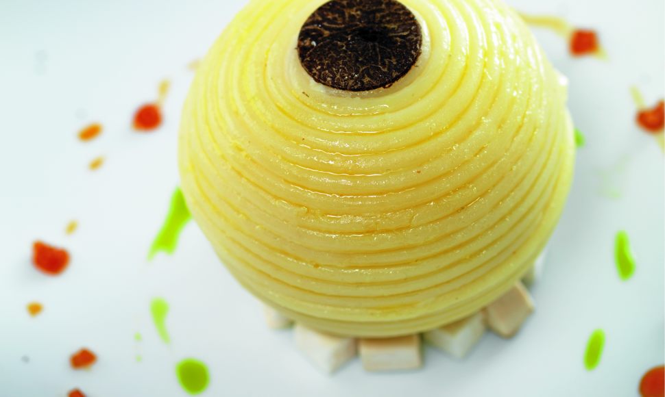 Étonnant montage de spaghetti, ris de veau, cèpes et truffe, ce plat est une véritable bulle de saveurs sublimées par la force de la truffe. Une recette ronde qui cherche avant tout à « aplanir les angles ».
