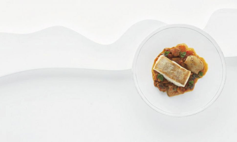 Stockfisch, saucisse et pieds de veau, beau morceau de morue poêlé