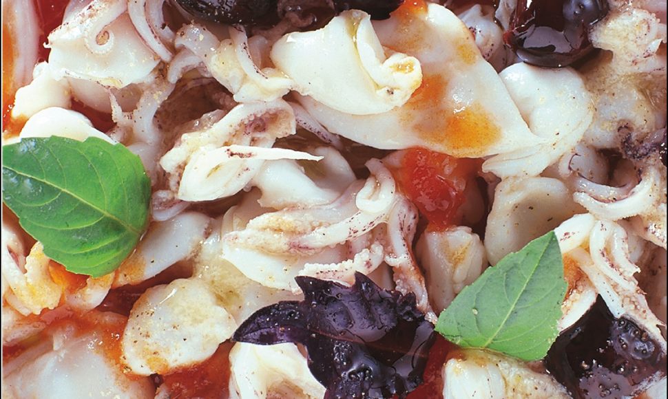 Supions de méditerranée cuisinés minute, de la tomate fraîche, basilic et olives de nice