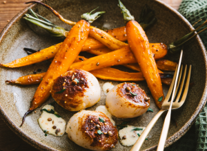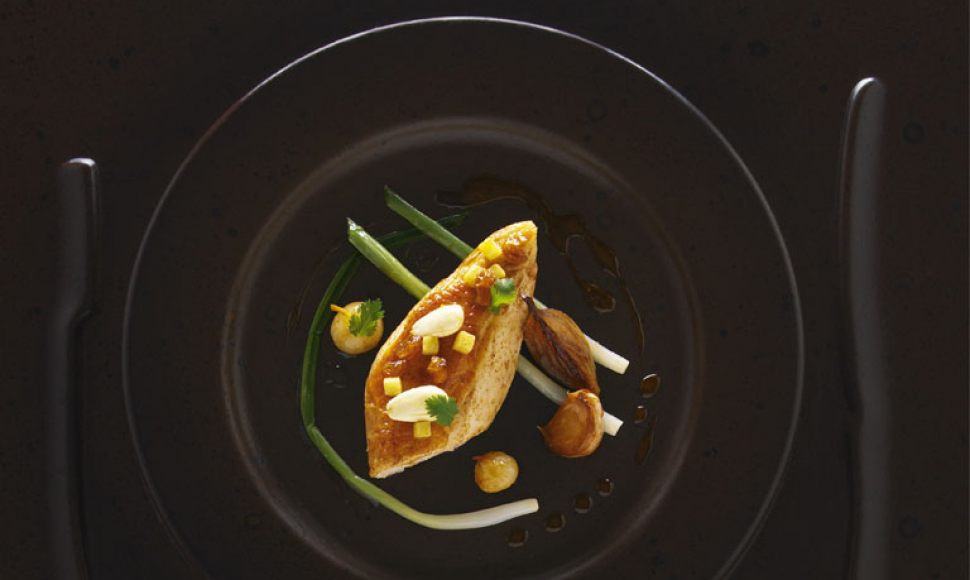 Nombreuses sont les recettes marocaines de poulet farci avec des amandes et des raisins secs, très relevé d’épices. Nous avons repris tous les ingrédients et imaginé la nôtre avec des suprêmes de volaille. Nous y avons ajouté une garniture de cébettes et d’oignons grelots.