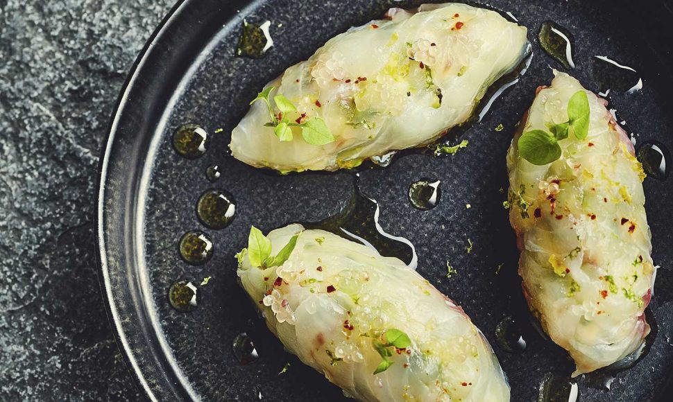 Une association de daurade et d'avocat pour des sushis sans riz, toujours aussi gourmands.