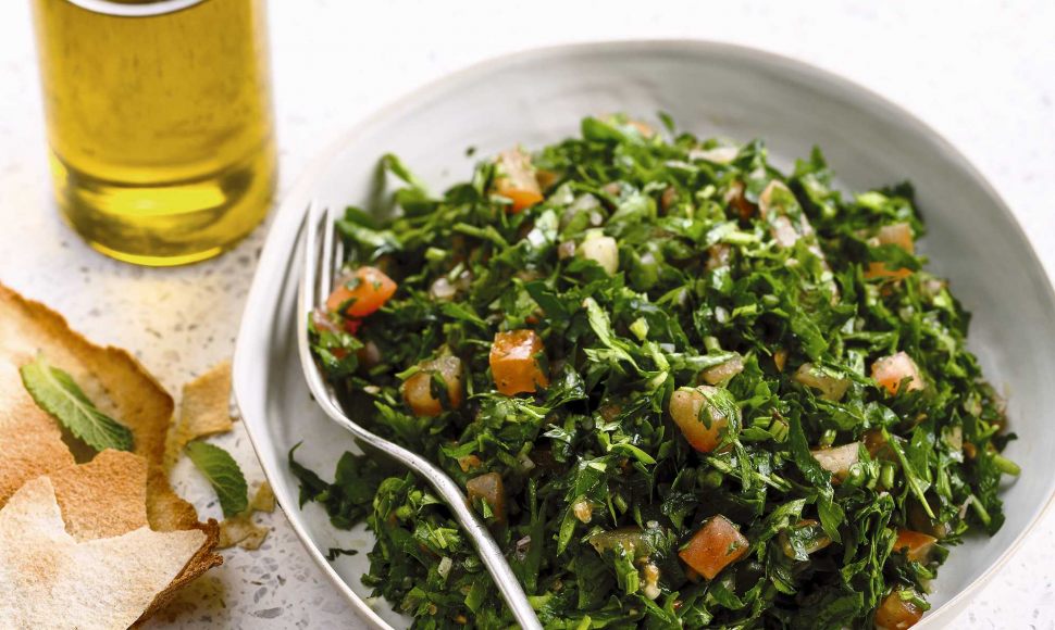 Tabboulé : persil hachē, menthe, tomates et huile d’olive