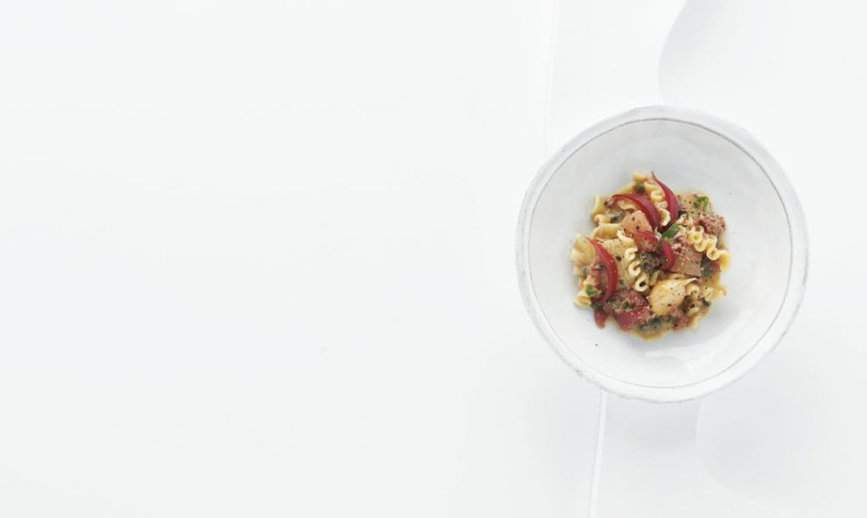 Taccole au fromage de tête, câpres et oignons au vinaigre