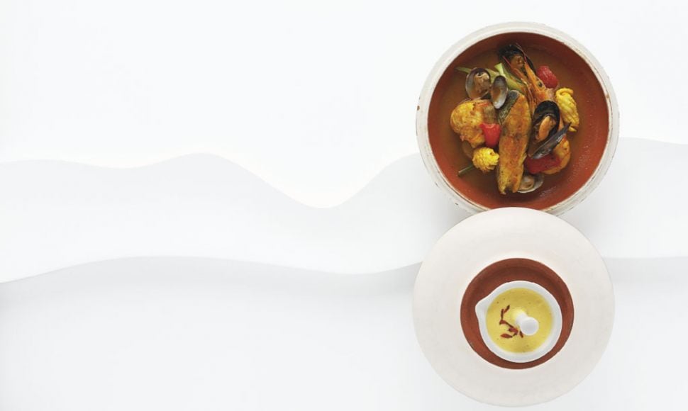 Tagine de poissons et gambas, légumes en « bouillépices »