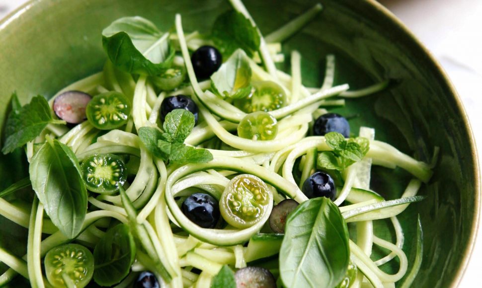 Tagliatelles de concombre, tomates cerise et myrtilles
