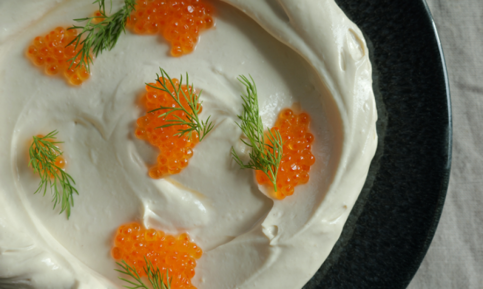 Cette recette simplissime se prépare en deux temps, trois mouvements. Le plus important ? D'utiliser des œufs de cabillaud fumés de bonne qualité et de rectifier l'assaisonnement à votre goût. Servez avec des œufs de saumon et quelques brins d'aneth.