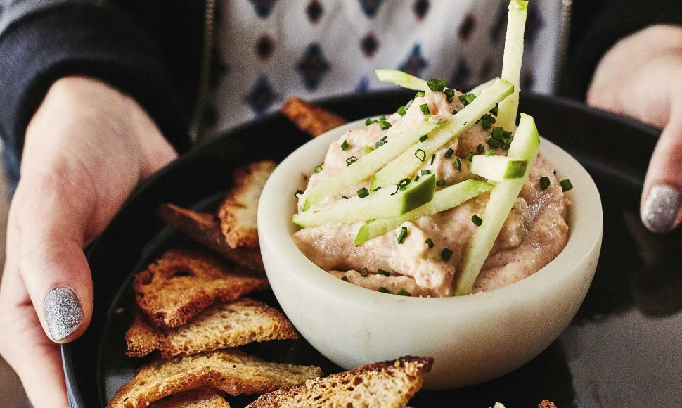 Un tarama à la pomme verte pour apporter une touche croquante, fruitée et légèrement acide. On ajoute de la ciboulette pour sa fraîcheur herbacée et du citron vert pour équilibrer le gras du tarama.