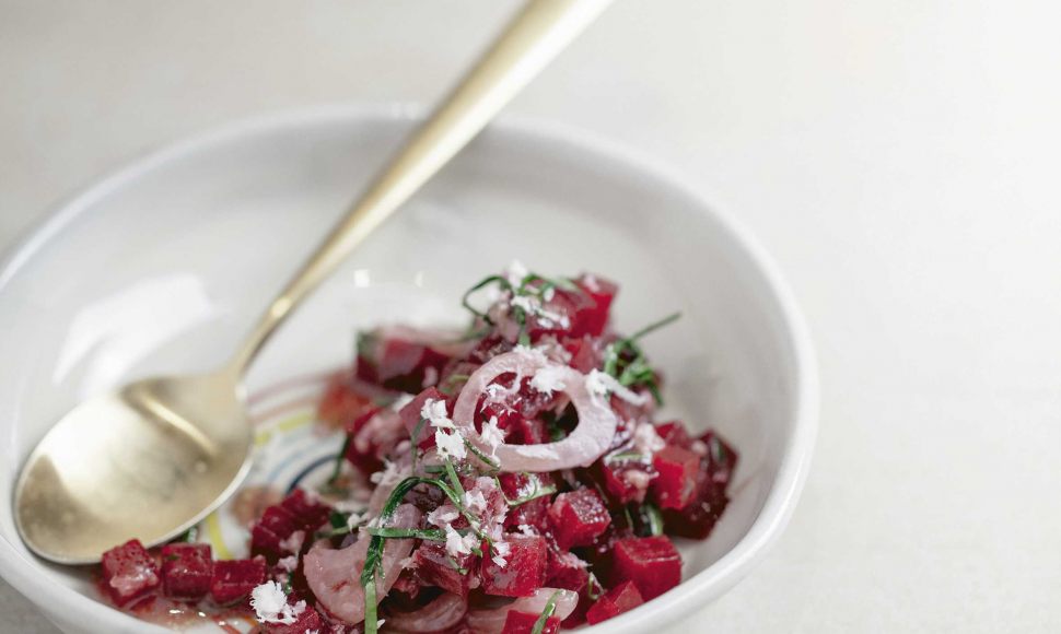 Une recette tout en fraîcheur dans laquelle la douceur de la betterave joue avec le caractère iodé des anchois, liés par des saveurs aux accents japonais.