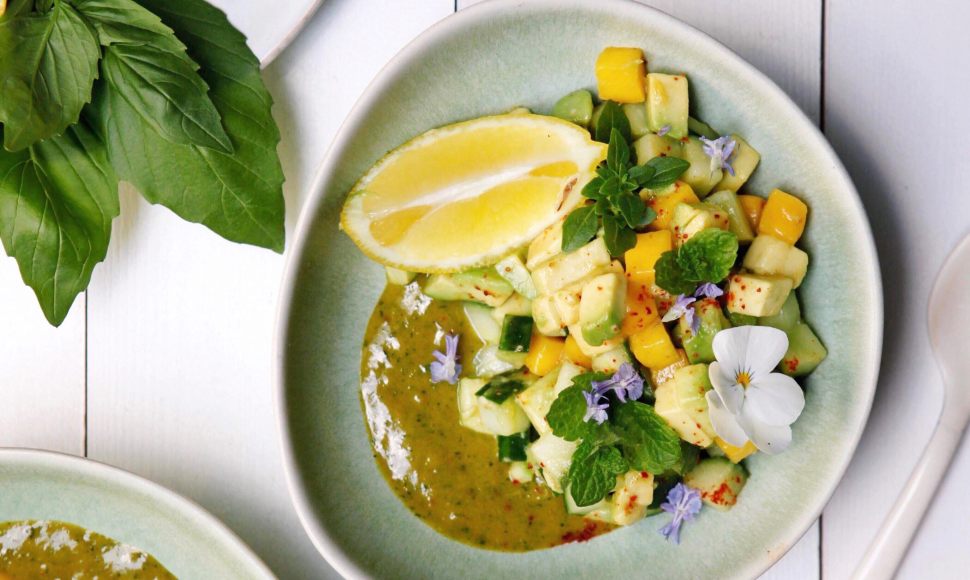 Tartare de concombres, avocat et mangue