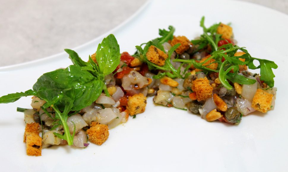 Habitués des tartares de poissons savoureux, cette recette est faite pour vous. Les traditionnels câpres accompagnent ce tartare de mulet prêt en 20 minutes. Quelques pignons torréfiés et des croûtons faits maison pour le croquant, de la riquette et du basilic pour la fraîcheur et c'est prêt. Rien de plus simple mais pourtant si bon, à déguster en entrée.