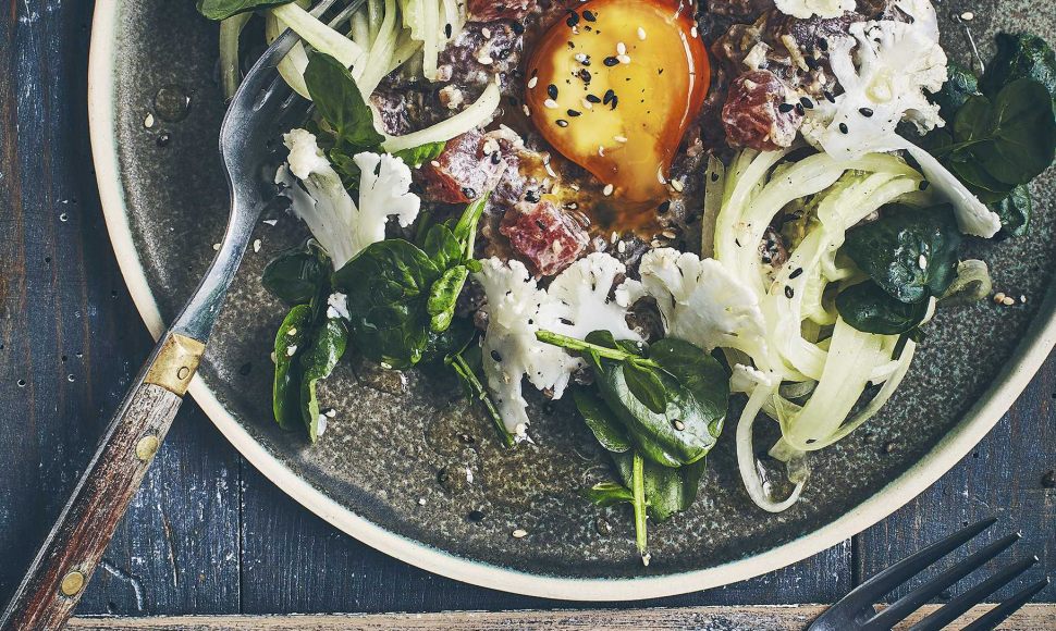 Tartare de thon aux algues sésame, jaune d’œuf mariné