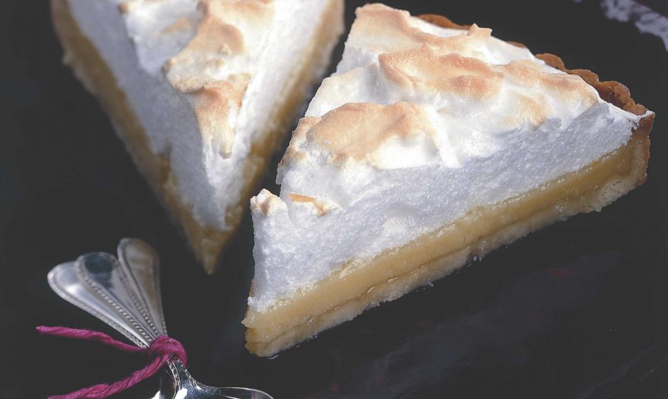 Lorsque la tarte est cuite, recouvrez-la de meringue, remettez au four quelques minutes jusqu’à ce que la meringue blondisse.