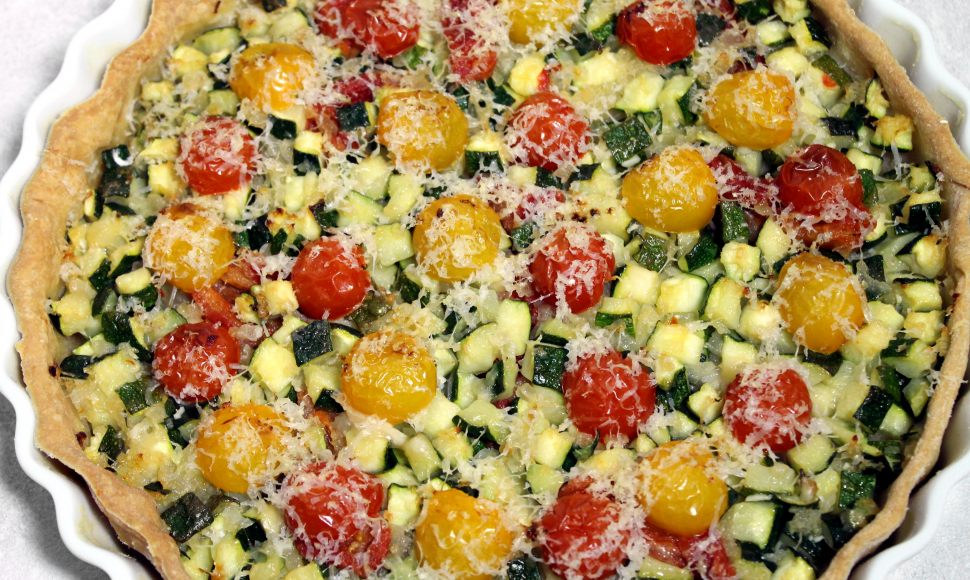 Apportez un peu de soleil dans vos assiettes en réalisant cette recette simple et savoureuse. En accompagnement d'une viande ou d'un poisson ou alors seule avec une salade, cette tarte aux courgettes et aux tomates va vous régaler. Le secret pour la réussir : ajoutez un peu de chapelure et de parmesan sur le fond de tarte pour absorber l'eau de cuisson des légumes.