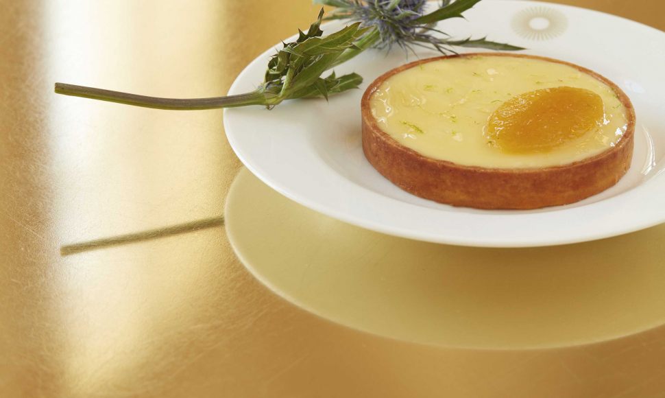 Une tarte au citron ? Non, une tarte aux deux citrons plutôt. Le meilleur des deux produits dans une création du chef Alain Ducasse, comme à Versailles.