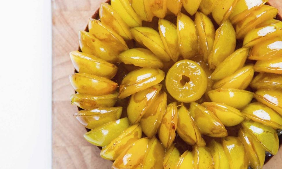 Le verjus va donner un goût acide aux mirabelles et du twist à la tarte.