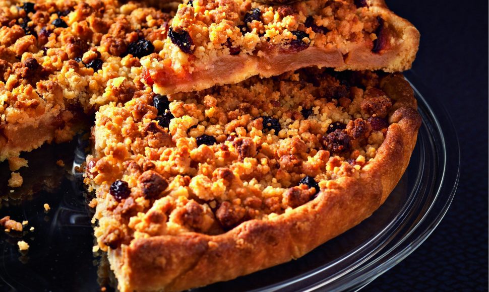 Dans un saladier ou le bol d’un robot, mélangez la farine avec le sucre roux, la poudre d’amande et le beurre coupé en morceaux. Mélangez jusqu’à obtenir la consistance d’une chapelure grossière. Répartissez les pommes sur le fond de tarte et parsemez des raisins égouttés. Couvrez la tarte du crumble puis mettez au four pendant 35 min, jusqu’à ce qu’elle soit bien dorée.