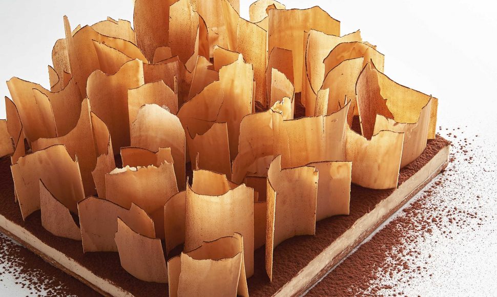 Grâce au retrait, on peut observer un phénomène incroyable : le chocolat s’enroule sur lui-même en formant quasiment des tubes, d’une finesse et d’un cassant extrêmes.