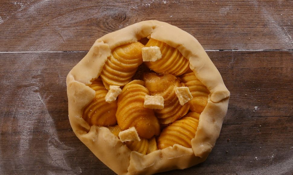Répartir les fruits sur l'abaisse de pâte. Rabattez les bords vers le centre de façon à obtenir des bords généreux.