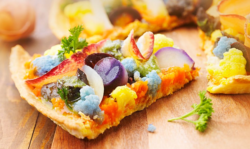 Laver et couper les légumes en morceaux réguliers et les cuire dans de l’eau salée. Couper le potiron et le faire cuire feu doux avec un peu de thym. Assaisonner de sel et de poivre. En fin de cuisson, séparer la pulpe du potiron du jus de cuisson et l’écraser à la fourchette. Mixer les feuilles de persil avec le beurre.