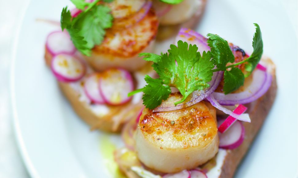Une recette pour déguster les dernières (et meilleures) noix de Saint-Jacques de la saison : du chèvre et des radis croquants, c'est le printemps qui frappe à la porte.
