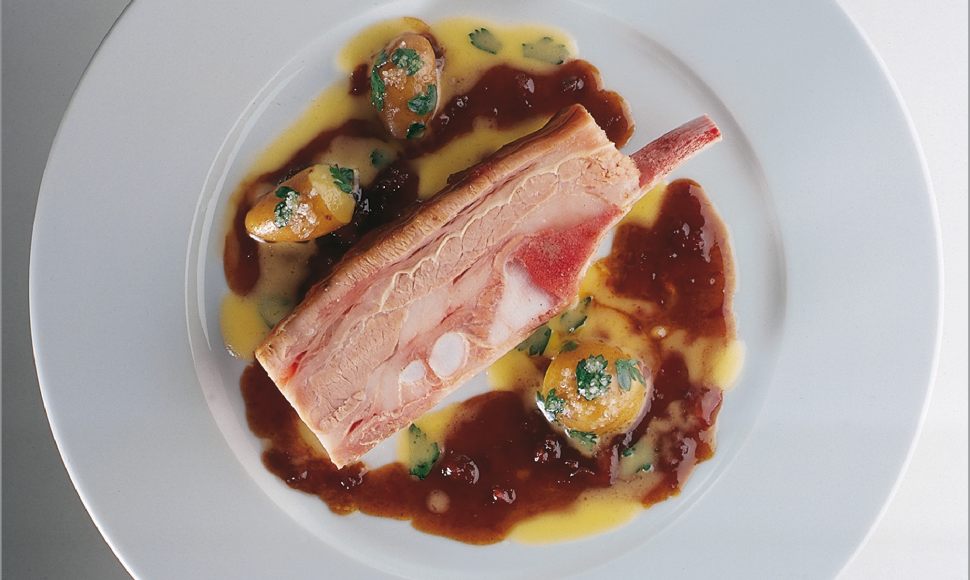 Tendron de veau de lait en sauté marengo, pommes nouvelles de l’île de ré