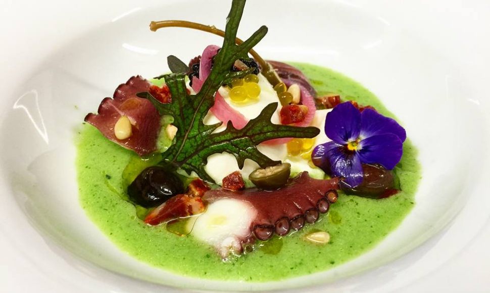 Faire une brunoise de chorizo. Couper les tentacules de poulpe en morceaux de deux à trois centimètres environ. Assaisonner d’un filet de citron, d’huile d’olive et de sel.