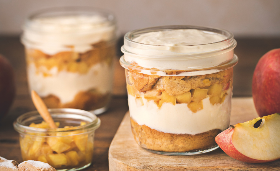 Version réinterprétée du tiramisu classique signée Sherpa & Steph à table. Pommes de Savoie caramélisées au miel et à la cannelle, douceur fruitée mariée à la crème onctueuse au mascarpone. Montage en verrines avec biscuits à la cuillère imbibés de café, pour un dessert réconfortant et élégant. Idéal pour clore un repas ou pour une pause gourmande.