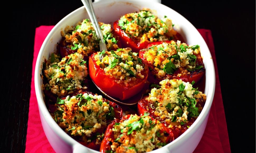 Préchauffez le four à 210 °C (th. 7). Hachez le persil et l’ail et mixez-les avec le pain de mie. Lavez et coupez les tomates en deux.
