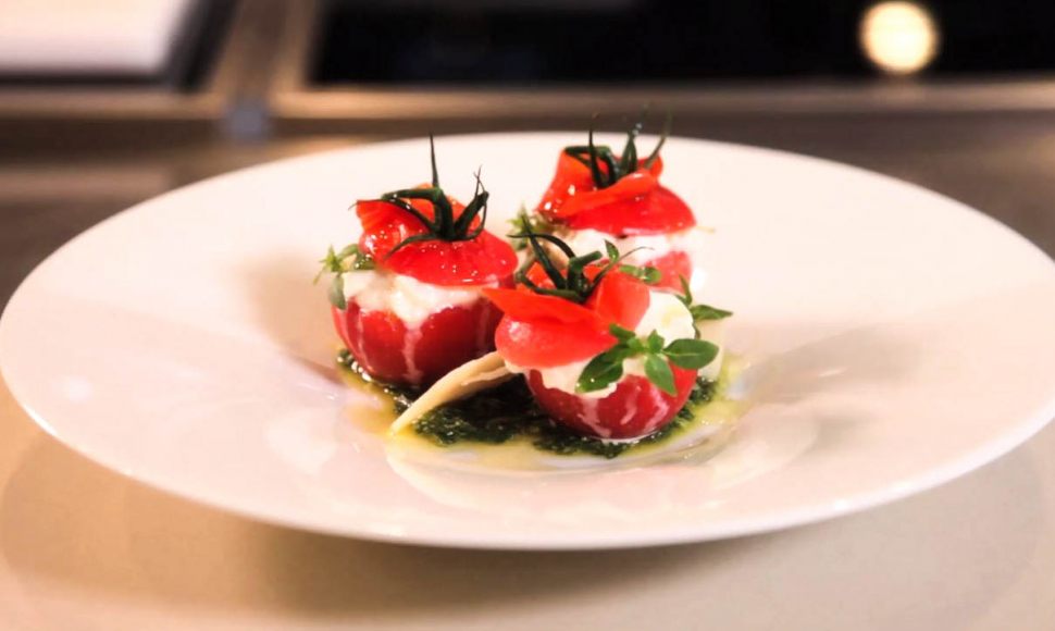 Découvrez cette recette simple mais élégante qui revisite avec originalité l'intemporelle salade tomate-mozza. La tomate n'est plus tranchée mais farcie au pistou et à la marmelade de tomate, le tout surplombé par une mousse de mozzarella nature et fumée. Une réinterprétation aérienne qui révèle ses multiples saveurs.