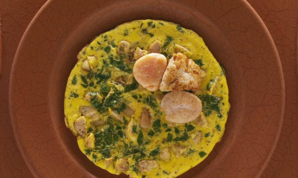 La « Tortilla de Sacromonte » doit son nom au quartier gitan le plus typique de la capitale de Grenade, où l’on trouve les grottes, où l’on danse et on chante le flamenco. On prend cette tortilla avec du fino pendant le spectacle. Nous y avons rajouté des herbes.