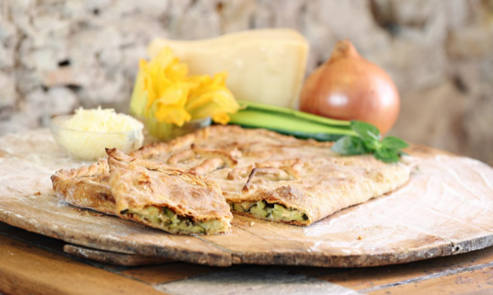 Il y avait un temps où les villageoises allaient faire cuire leur tourte au four à bois communal. La tourte sur un « taiiau » (planche ronde en bois d’olivier servant à pétrir) chevillée sur la tête. Comme un rituel, les tourtes arpentaient le village jusqu’au four. Voici la recette de ma grand-mère Adrienne qui avait la réputation d’être la plus exquise des tourtes à la courgette.