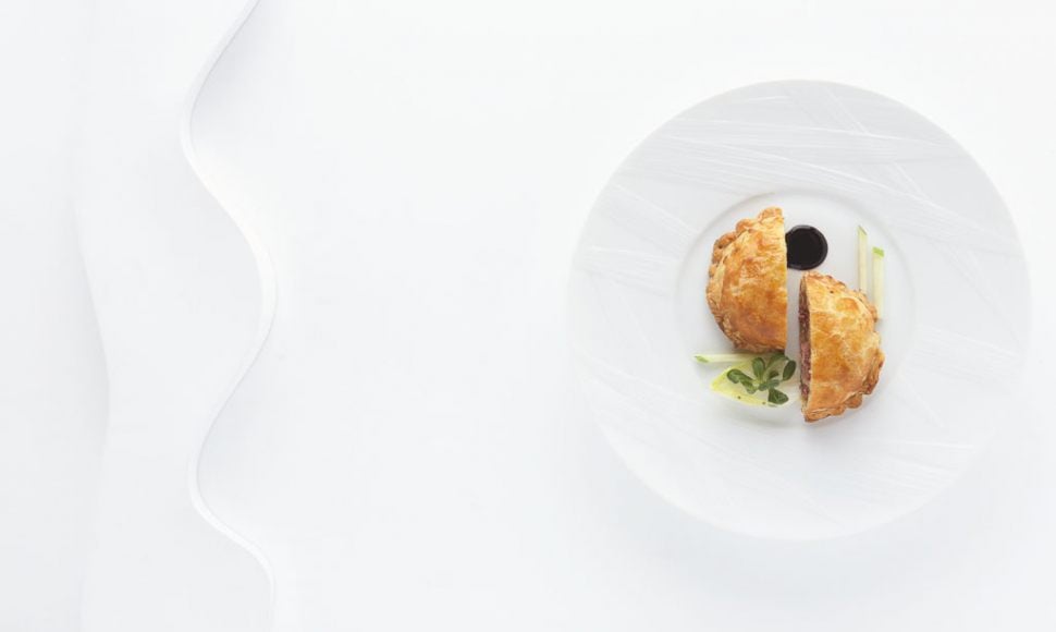 Tourtelette de gibier et fruits d’automne juste tièdes, sauce poivrade et salade d’hiver